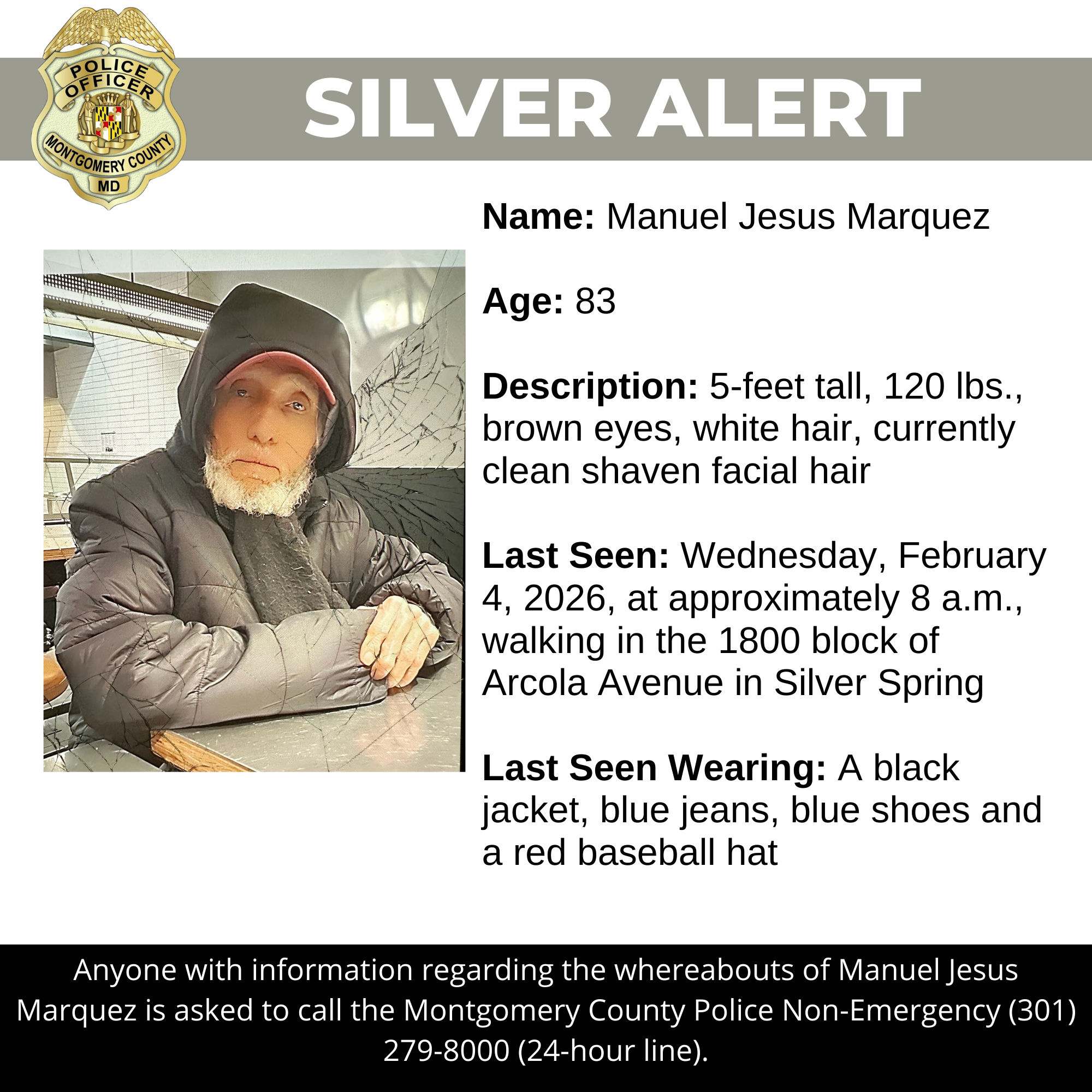 Gaithersburg, MD – Detectives from the Montgomery County Department of Police – 4th District Investigative Section are asking for the public’s assistance in locating Manuel Jesus Marquez, a missing 83-year-old.
